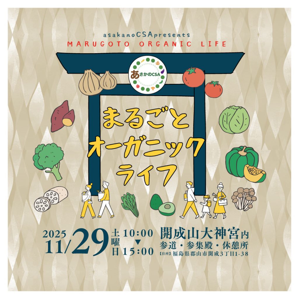 令和7年11月29日(土)、郡山市の開成山大神宮にて、有機農業や地域の食文化、福祉と農の連携(ノウフク)をテーマに、福島の未来を共につくる場として実施いたします。
